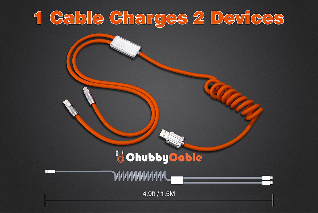 Meet our Chubby Plus, 2 in 1 retractable fast charge cable. Now you can charge your Iphone and Android gear at same time!