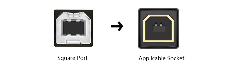 Square port design: For Universal use of multiple devices: printer, fax machine, scanner, multi-function machine and other USB computer peripherals.
